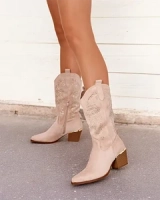 Royalfashion Smėlio spalvos moteriški eko zomšos postiniai bateliai Afrogosa