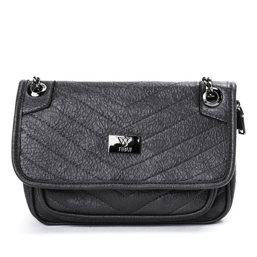 Mała torebka na ramię w kolorze szarym z paskiem w formie łańcuszka - Torebki