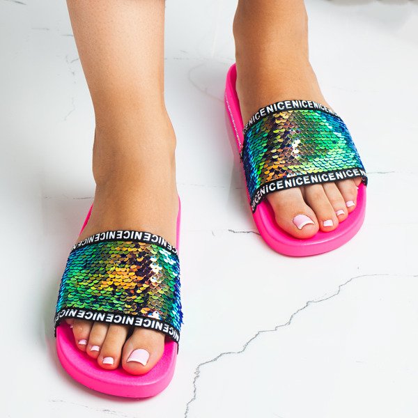Fuksjowe klapki z cekinami Summer Glow - Obuwie