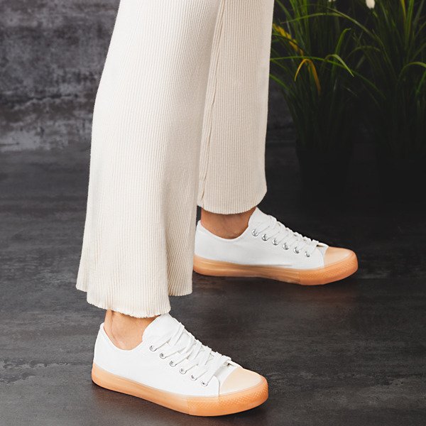 Biało-brązowe trampki na gumowej podeszwie Peach Blow - Obuwie
