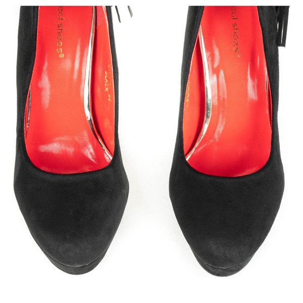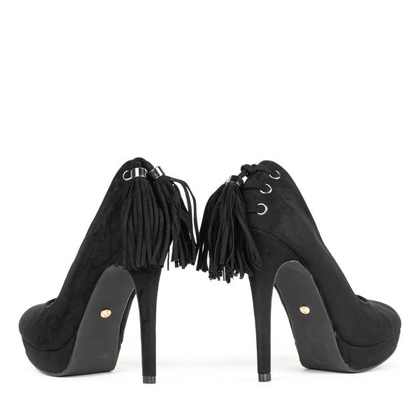 Czarne czółenka na szpilce z ozdobnymi frędzelkami Seletanore - Obuwie