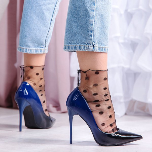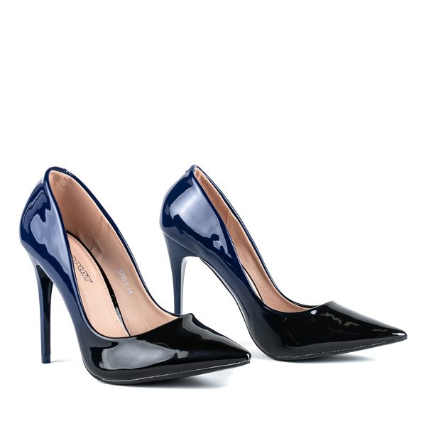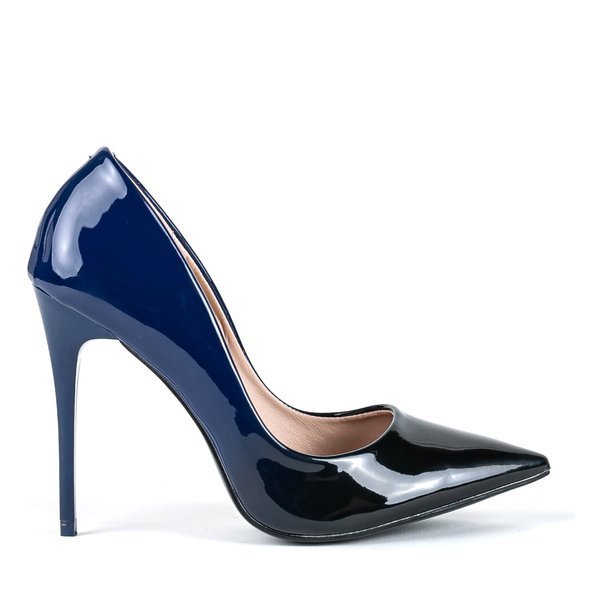 - Niesamowite czółenka na wysokiej szpilce. Wykonane ze skóry ekologicznej lakierowanej. Model posiada granatowy efekt ombre. Obuwie ze szpiczastym noskiem.