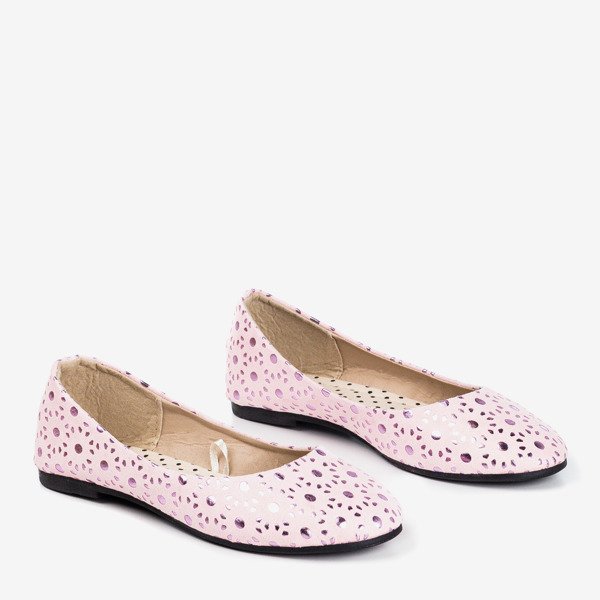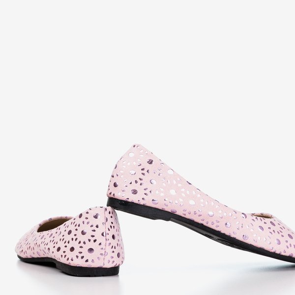 - Klasyczne wzorzyste dziewczęce baleriny w jasnoróżowym kolorze. Materiał wykonania to eko-zamsz oraz eko-skóra. Wkładka wykonana z tkaniny. Balerinki idealne na co dzień.