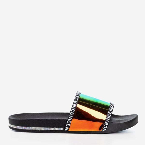Czarne klapki z holograficzno-żółtym paskiem Rinata - Obuwie
