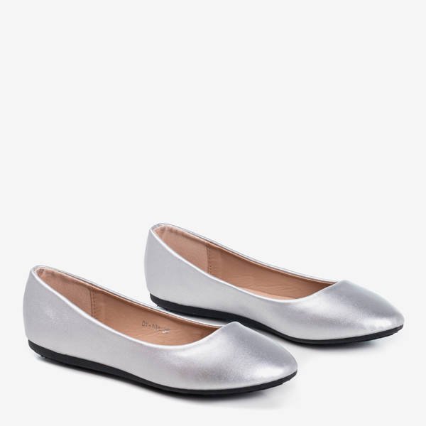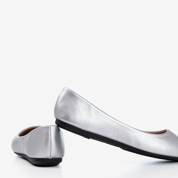 Srebrne eko-skórzane damskie baleriny Mareusa - Obuwie