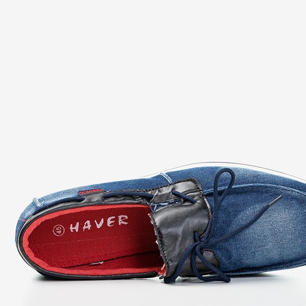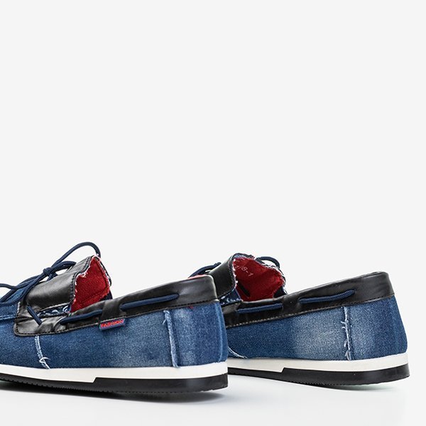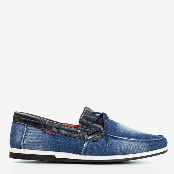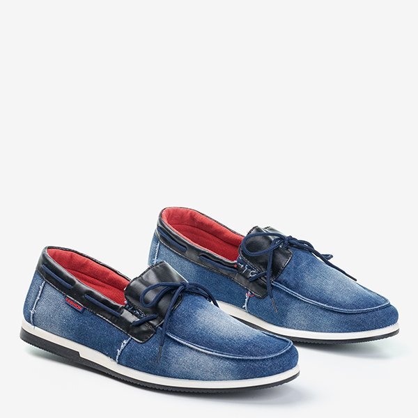 Granatowe jeansowe mokasyny męskie Rais - Obuwie