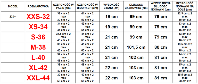 Tabela rozmiarów  - przed zakupem sprawdź rozmiarówkę!