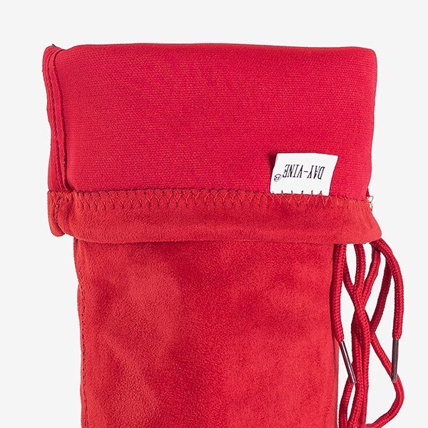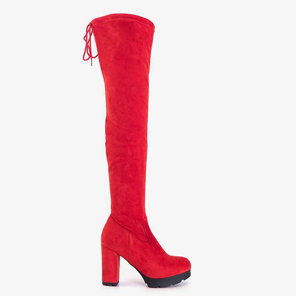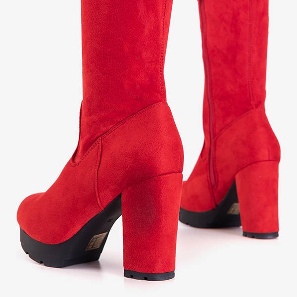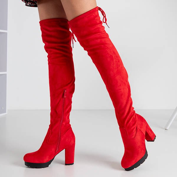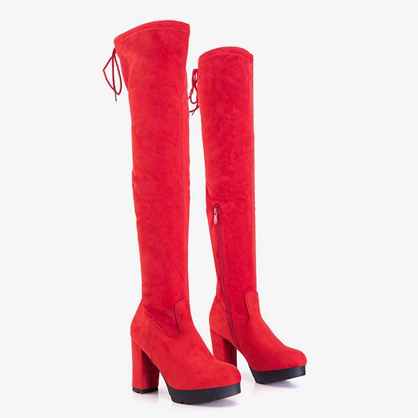 Czerwone kozaki za kolano na słupku Fortunata - Obuwie