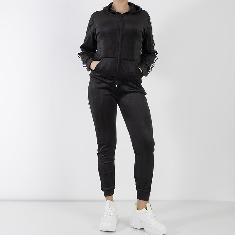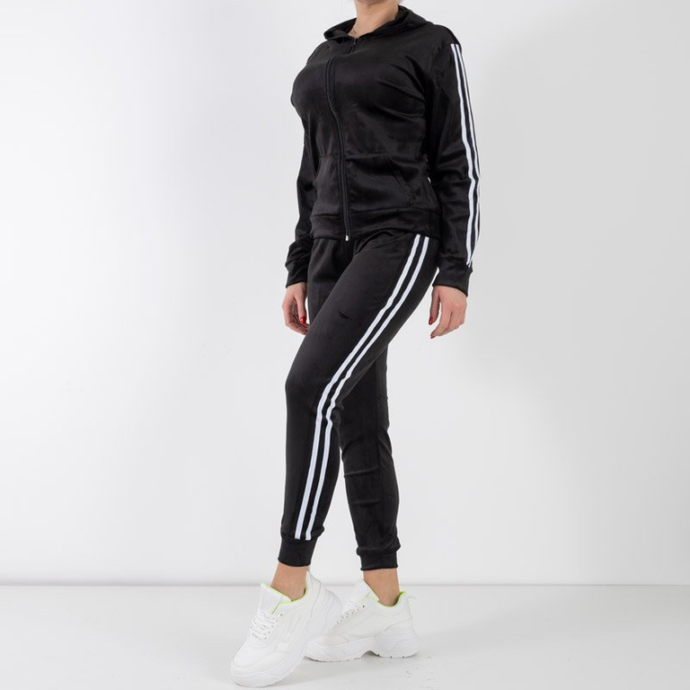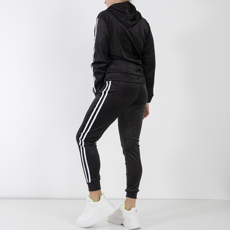 Czarny damski komplet dresowy z białymi lampasami - Odzież