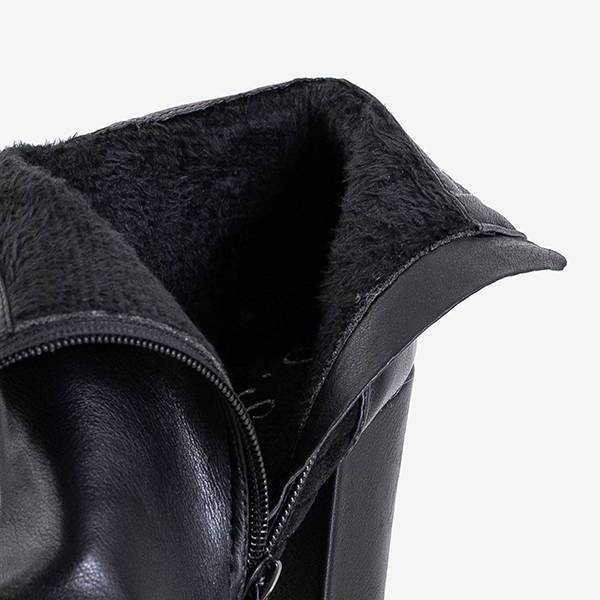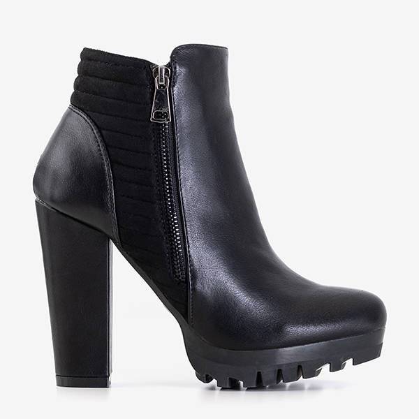 OUTLET Czarne damskie botki na słupku z ozdobnym suwakiem Santiago - Obuwie