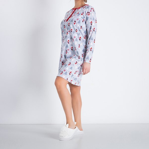 Szara damska koszula nocna ze świątecznym printem - Odzież