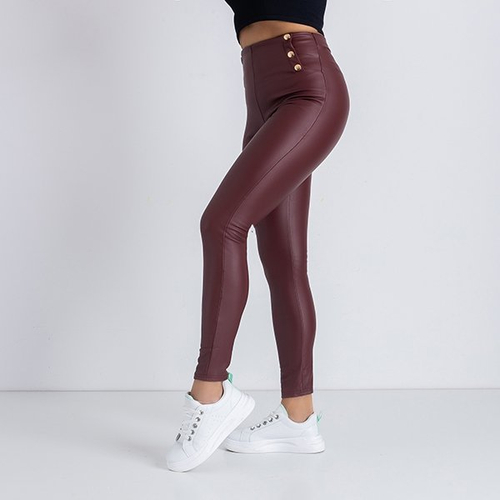Bordowe damskie tregginsy z ozdobami - Spodnie