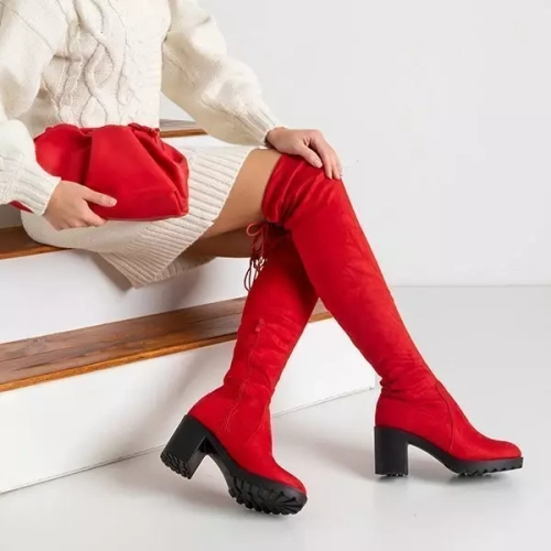 OUTLET Moteriški raudoni batai virš kelių ant „Tomira“ stulpelio-Batai