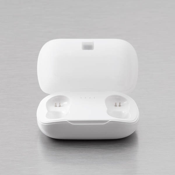 • Baltos belaidės ausinės: 3 mygtukai (muzikos garsumo ir skambučių valdymas), universalios ("iOS" ir "Android") , sukimo užraktas, baterija veikia iki 8 val. Komplekte: ausinės, dėklas su įkrovikliu, USB laidas, silikoniniai ausų pagalvėlės.
