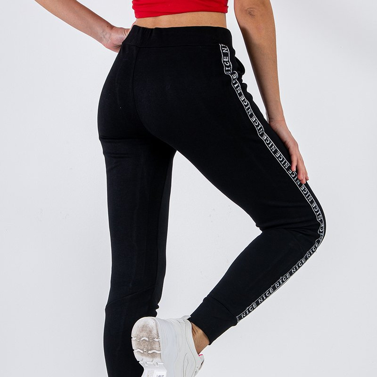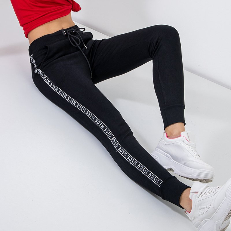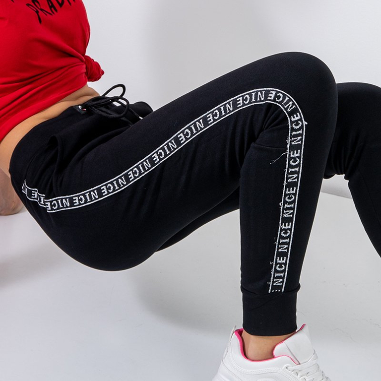 Juodos moteriškos sportinės kelnės su sidabriniu užrašu - Apranga