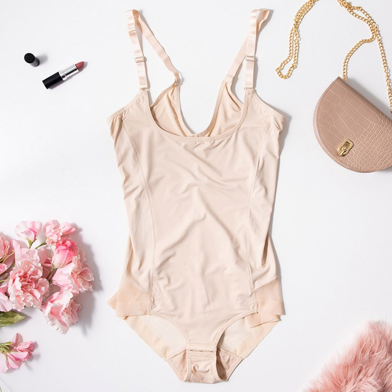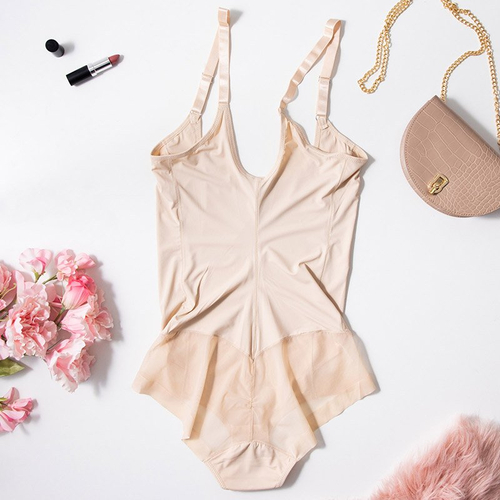 Moteriškas smėlio spalvos bodis su permatomu intarpu - Apatiniai rūbai