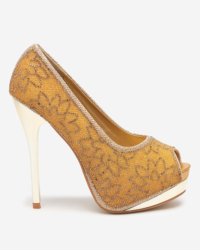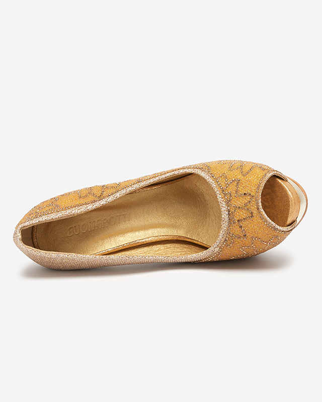 Vida aukso spalvos moteriškos brokatinės pompos su kubiniu cirkoniu - Batai