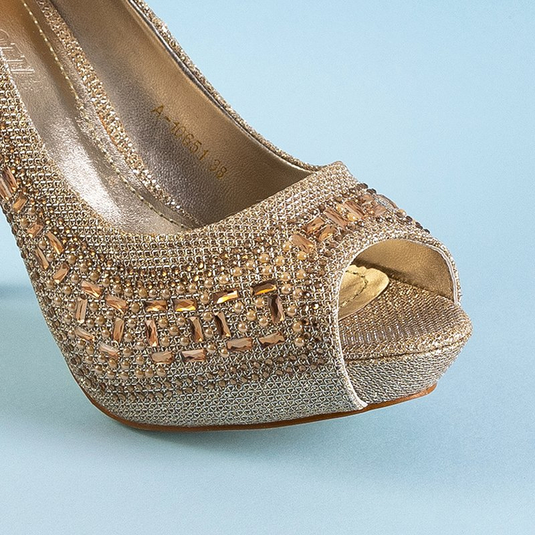 Auksiniai moteriški brokatiniai siurbliai ant smeigtuko su cirkoniu Inda - Avalynė