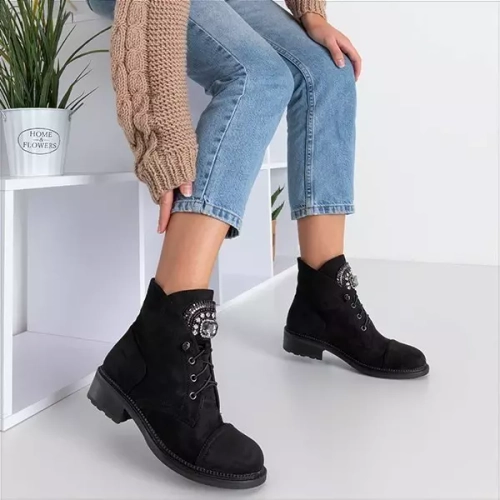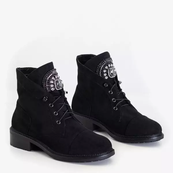 Czarne zamszowe workery z cyrkoniami Rafia - Obuwie