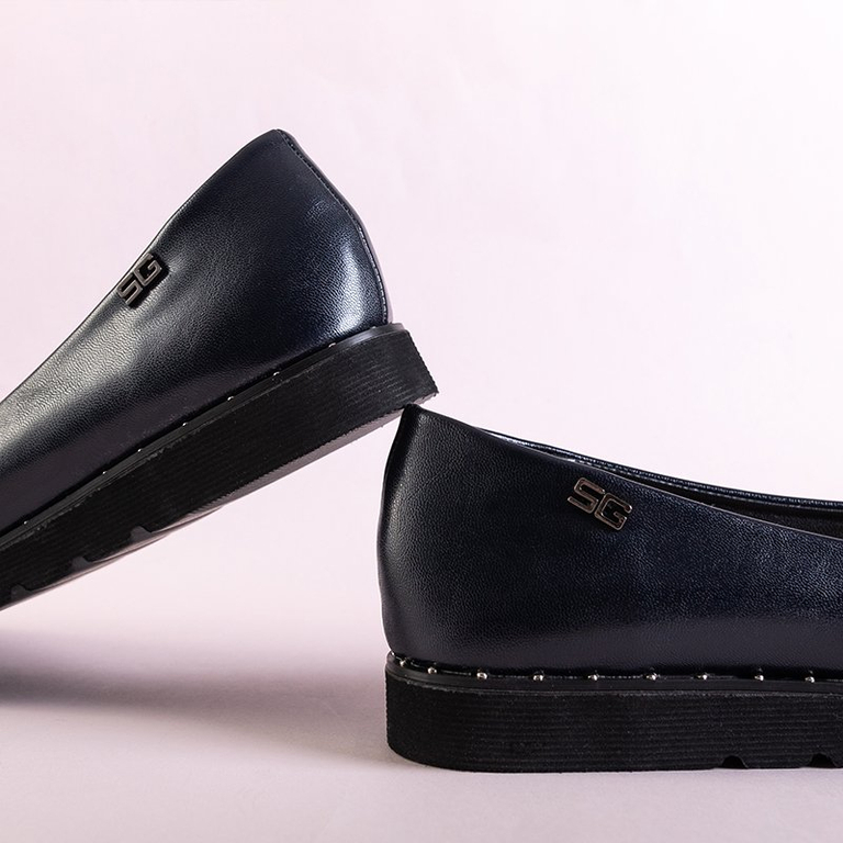 Tamsiai mėlynos spalvos ekologiškos odos moterų balerinos Nisa - Batai