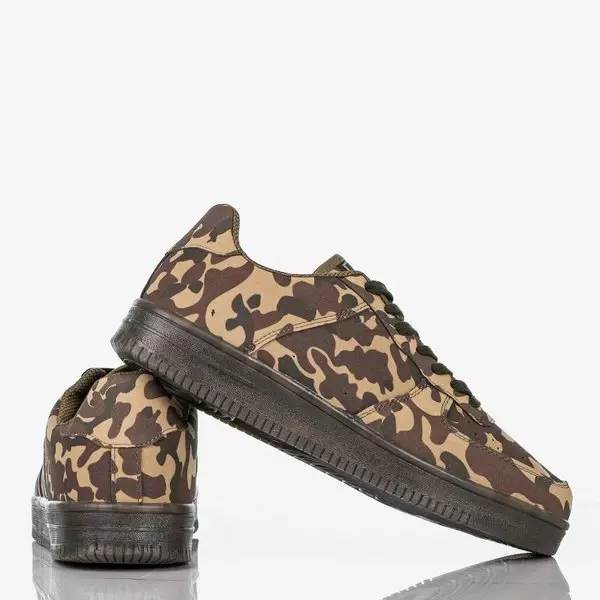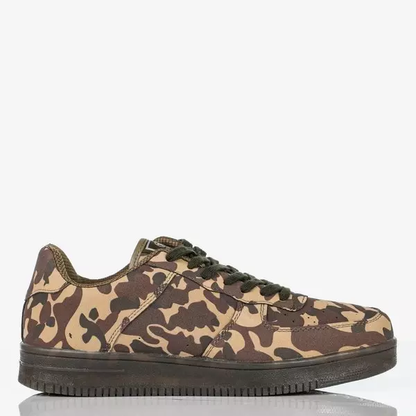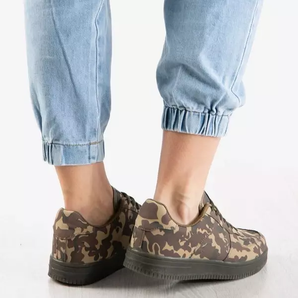 - Modne sportowe buty damskie na płaskiej podeszwie. Cholewka jest wykonana z eko-skóry w kolorze moro. Środek buta jest wyłożony tkaniną. Obuwie jest sznurowane. Prezentowany model sprawdzi się podczas aktywnych zajęć!