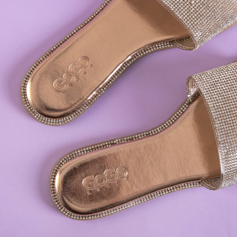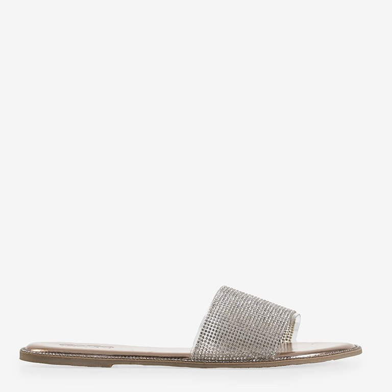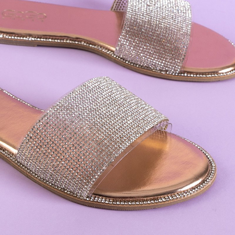 Moteriškos rožinio aukso spalvos šlepetės su kubiniu cirkoniu Verina - Avalynė