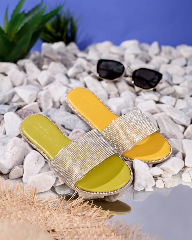 Žalios moteriškos šlepetės su kubiniu cirkoniu Verina - Avalynė