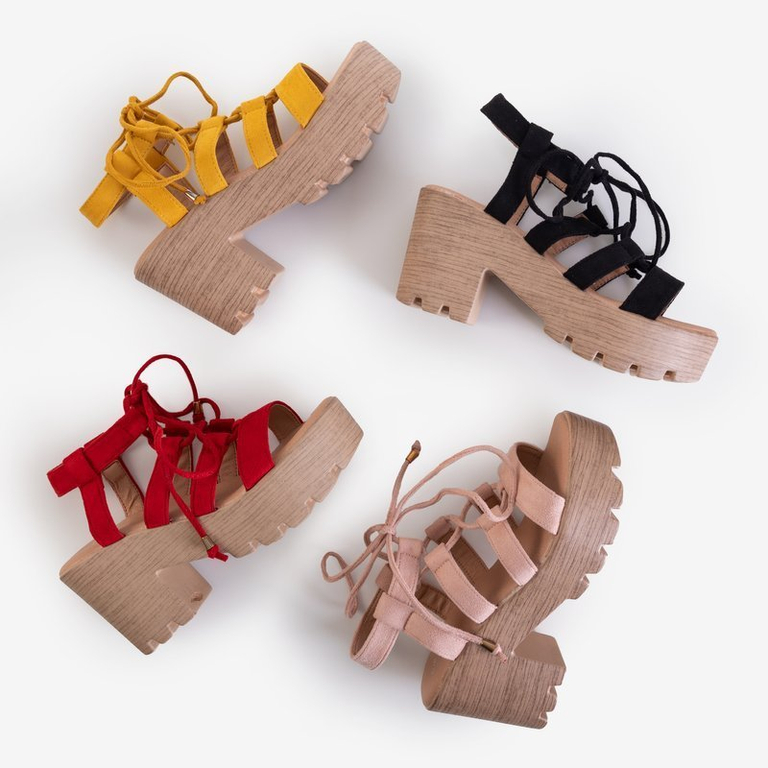 - Fantastiškos moteriškos basutės ant stabilaus stulpo, pagamintos iš minkštos ekologiškos zomšos. Modelis aprištas ant kulkšnies virvele, turi vidpadį, padengtą ekologiška oda. Originalus padas prideda stilingą išvaizdą.