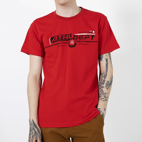 Raudoni vyriški medvilniniai marškinėliai su užrašu-Drabužiai