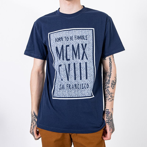 Vyriški tamsiai mėlyni medvilniniai marškinėliai su įspaudu-Drabužiai