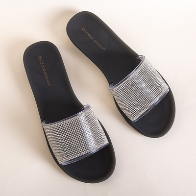 Moteriškos juodos guminės šlepetės su kubiniu cirkonio dioksidu Niamh - Avalynė