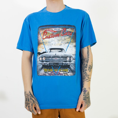 - Puikūs vyriški 100% medvilnės marškinėliai trumpomis rankovėmis. Priekinę dalį puošia spalvotas raštas su automobiliu. Klasikinis kirpimas ir stilius užtikrins patogumą kasdien.