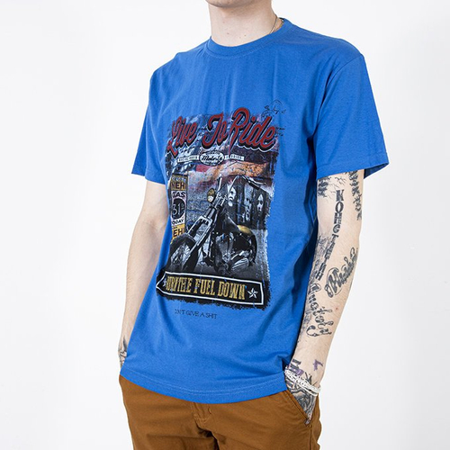 Vyriški kobalto medvilnės marškinėliai su spalvotu atspaudu-Drabužiai
