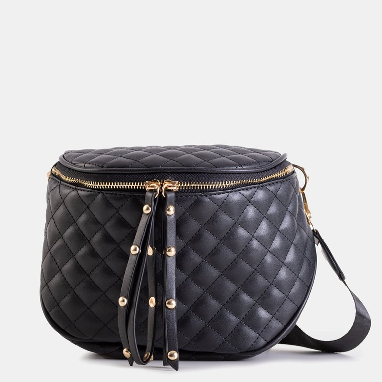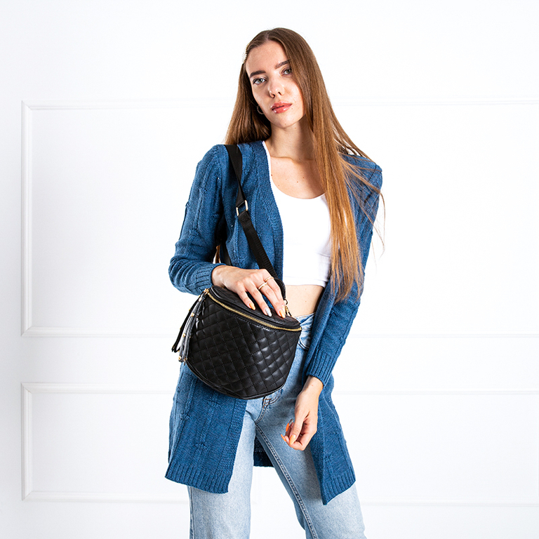 - Moteriškas inkstinis maišelis iš eko odos ir dygsniuotas ornamentas. Turi platų reguliuojamą dirželį. Viduje maža kišenė su užtrauktuku.
