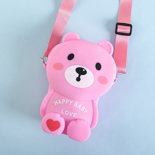 - Miela meškiuko formos rankinė iš silikoninės medžiagos. Modelis su užtrauktuku. Viduje vienas skyrius be papildomų kišenių. Į komplektą įeina ilgas dirželis, kurį galima reguliuoti. Puikiai tinka kasdieniam naudojimui!
