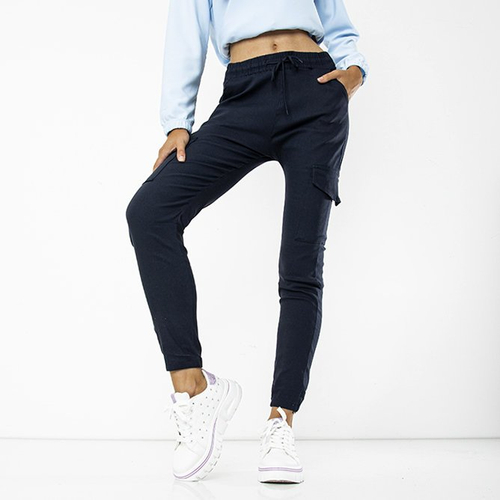 Tamsiai mėlynos moteriškos kelnės su kišenėmis - Drabužiai