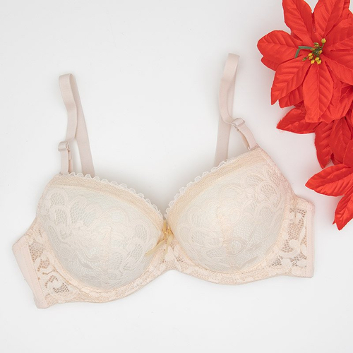 Smėlio spalvos paminkštinta liemenėlė su nėriniais push up - Apatiniai drabužiai