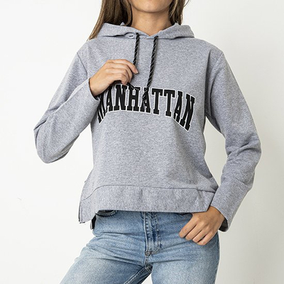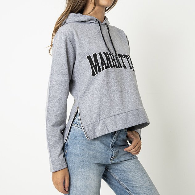 • Puikūs megztiniai su užrašu „MANHATTAN“, pagaminti iš viskozės medžiagos. Slydimo modelis, su gaubtu reguliuojamas raišteliais, apatinėje dešinėje pusėje - dekoratyvinis užtrauktukas. Puikiai tinka sportiniams kostiumams. PASTABA: matavimo tikslumas (+/-)