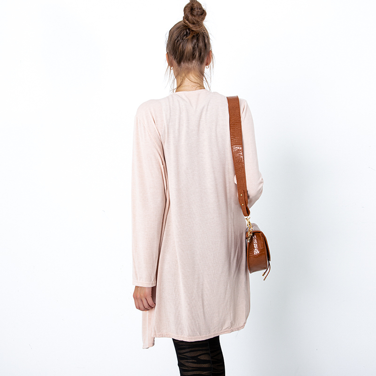 - Ilgas moteriškas megztinis iš elastingos medžiagos. Kardigano tipo apsiaustas, neturi užsegimo. Šis megztinis bus puikus jūsų drabužių spintos elementas šaltesnėms dienoms. PASTABA: matavimo tikslumas (+/-) 1 cm.