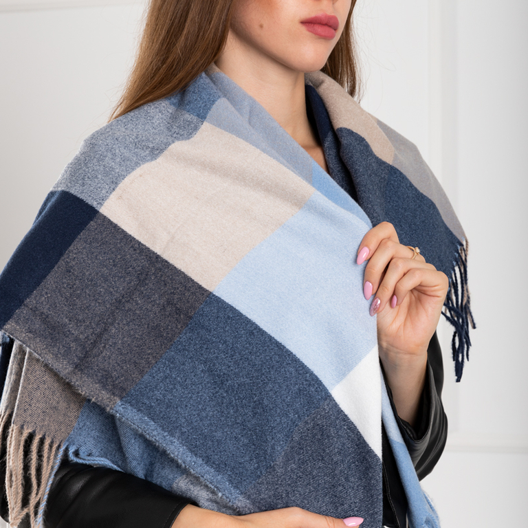 Tamsiai mėlyna moteriška šilta languota skara - Aksesuarai
