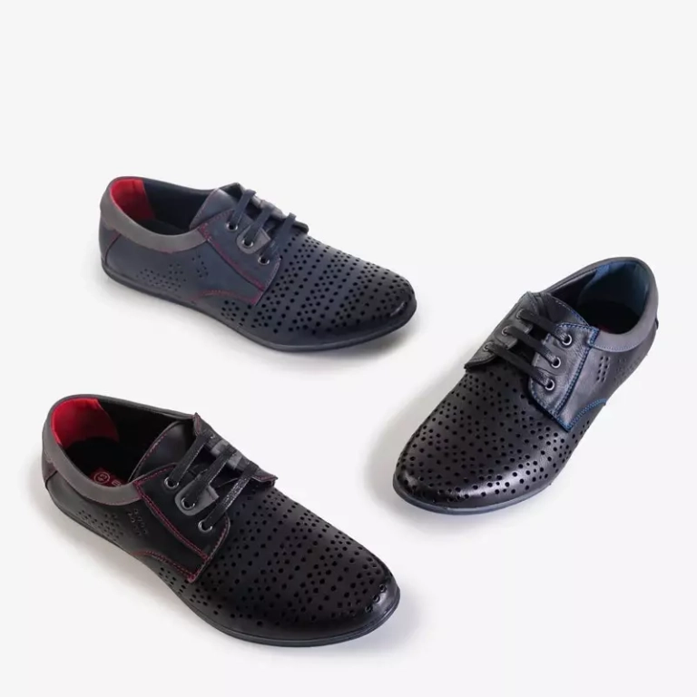 • Klasikiniai vyriški suvarstomi batai plokščiu padu. Viršus pagamintas iš ekologiškos odos su ažūrine apdaila. Viduryje vidpadis išklotas natūralia oda. Pastaba: ant gaminio medžiagos yra klijų pėdsakų.