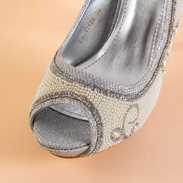 - Sensacingi moteriški bateliai su ornamentais, puošti cirkonais ir perlais. Modelis pasiūtas iš medžiaginės medžiagos, padengtos blizgučiais, vidpadis iš ekologiškos odos. Pastaba: gaminys turi klijų pėdsakų ant medžiagos.