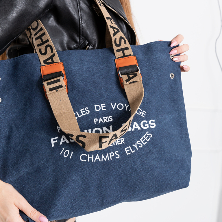 Tamsiai mėlynos spalvos audinio pirkinių krepšys moterims - Priedai