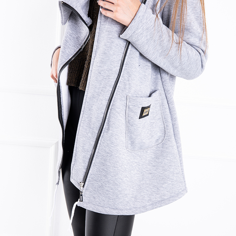 Pilkas moteriškas šiltas paltas su asimetrišku užtrauktuku - Drabužiai