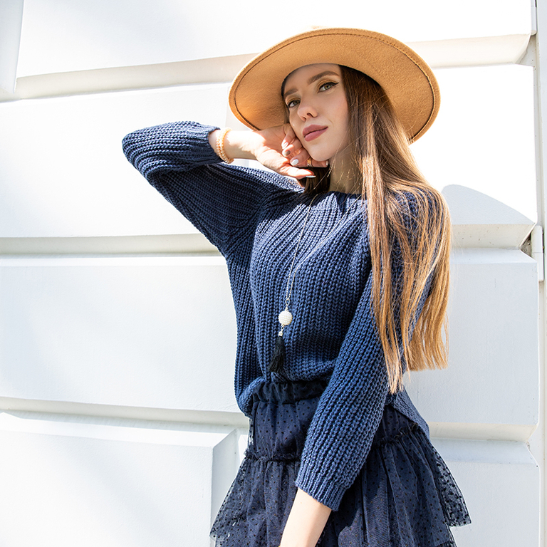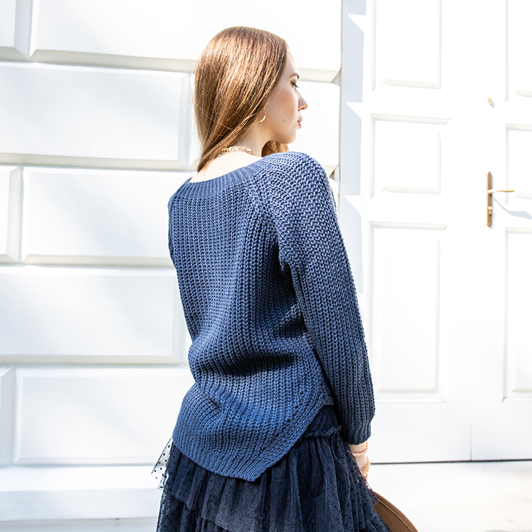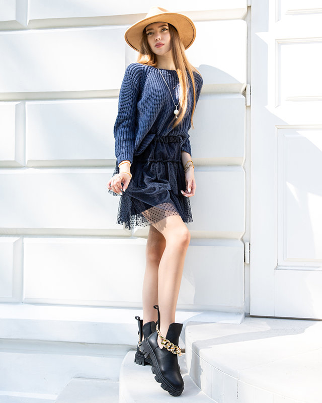 Tamsiai mėlynas megztinis su grandine - Drabužiai