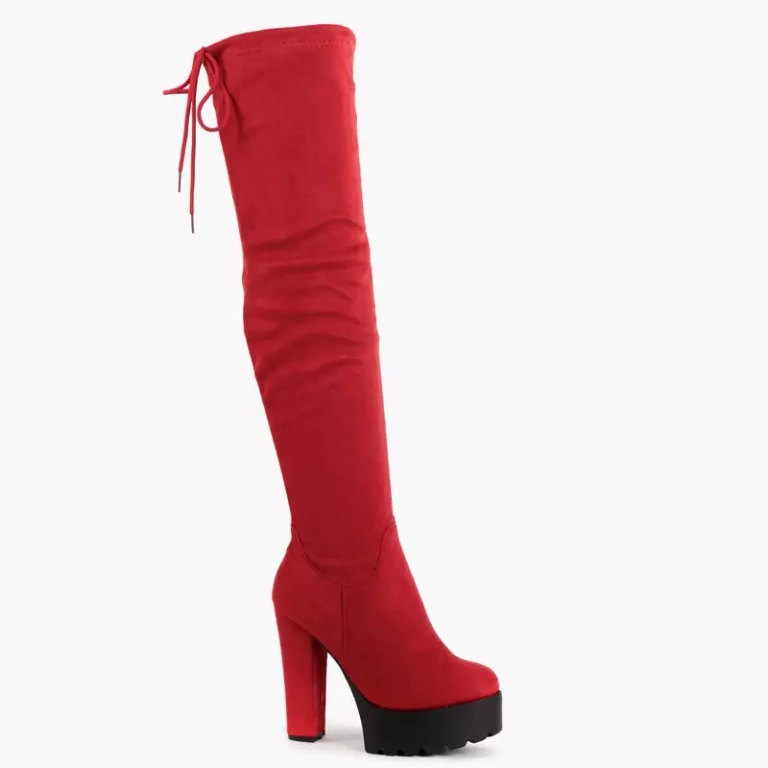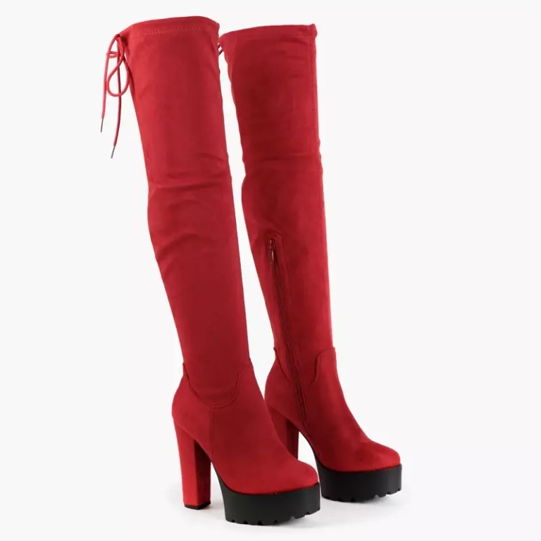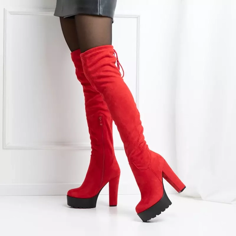 OUTLET Raudoni aukštakulniai batai per kelius Numi-Batai
