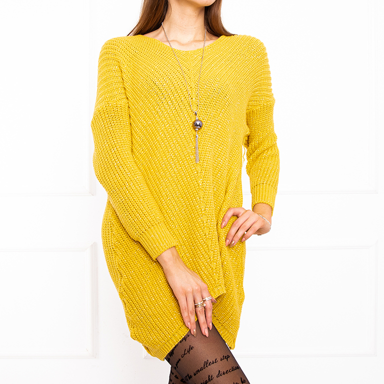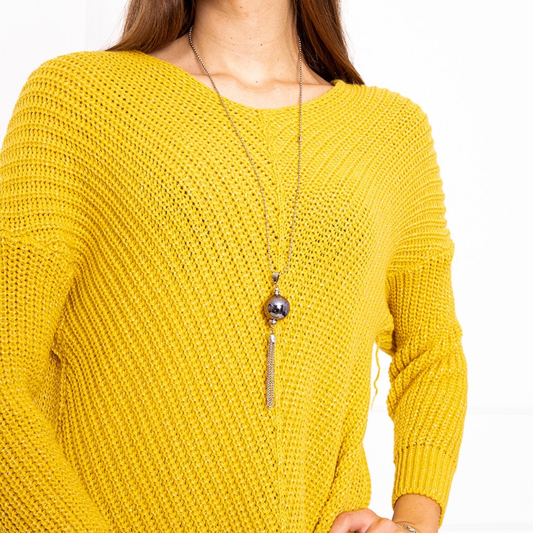 Moteriškas geltonas megztinis su karoliais - Drabužiai