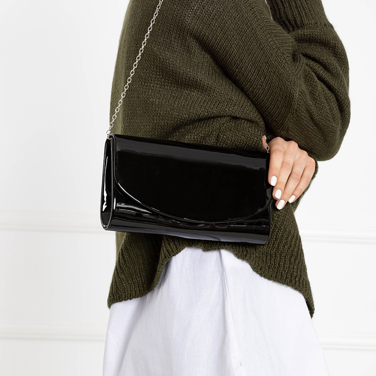 Moteriškas juodas lakuotas sankabos krepšys ant grandinėlės - Priedai