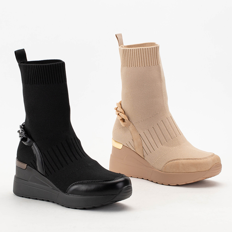 - Unikalūs moteriški užsegami pleištiniai batai iš tekstilės medžiagos. Kulno skaitiklis dekoruotas prisiūta plastikine tinkamos spalvos grandine, o viduje-eko odos įdėklas. Puikiai tinka aktyvioms dienoms!