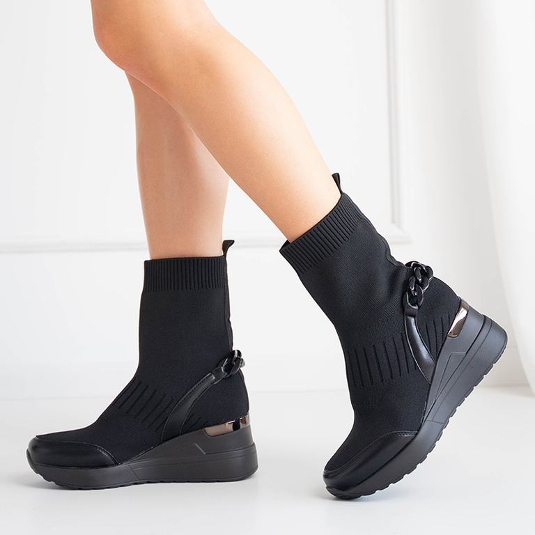 Juodi moteriško audinio pleištiniai batai Empleh - Avalynė